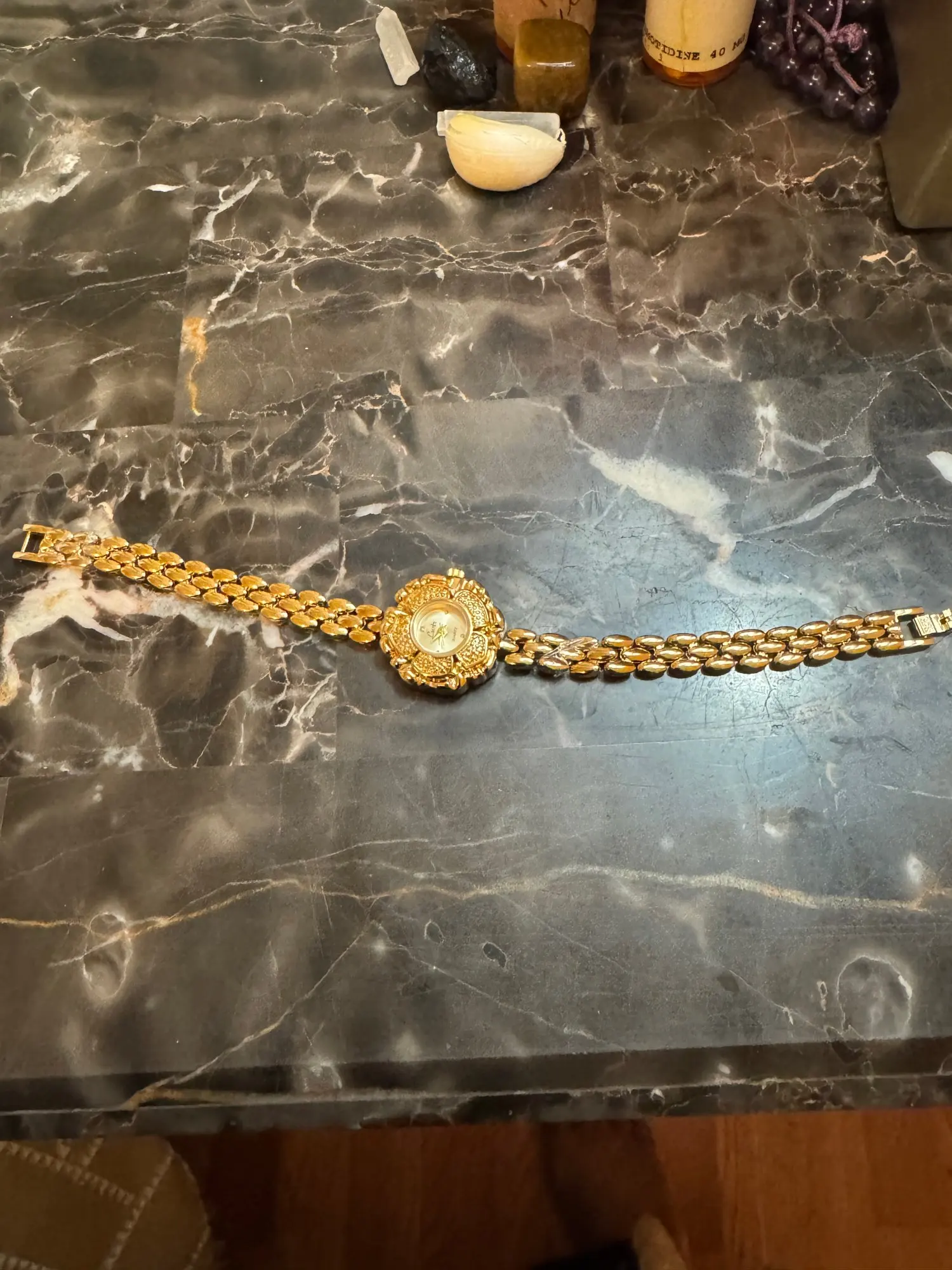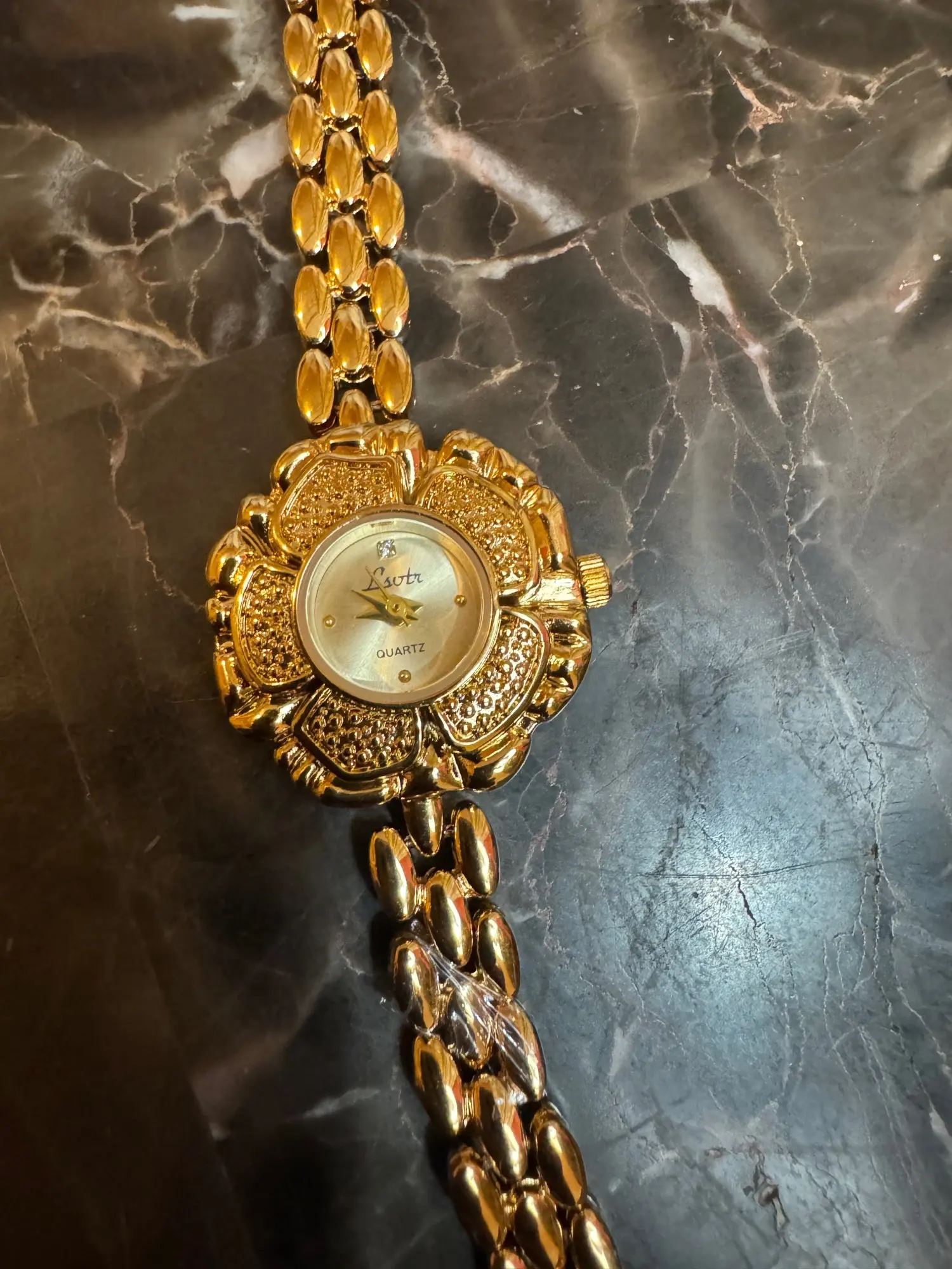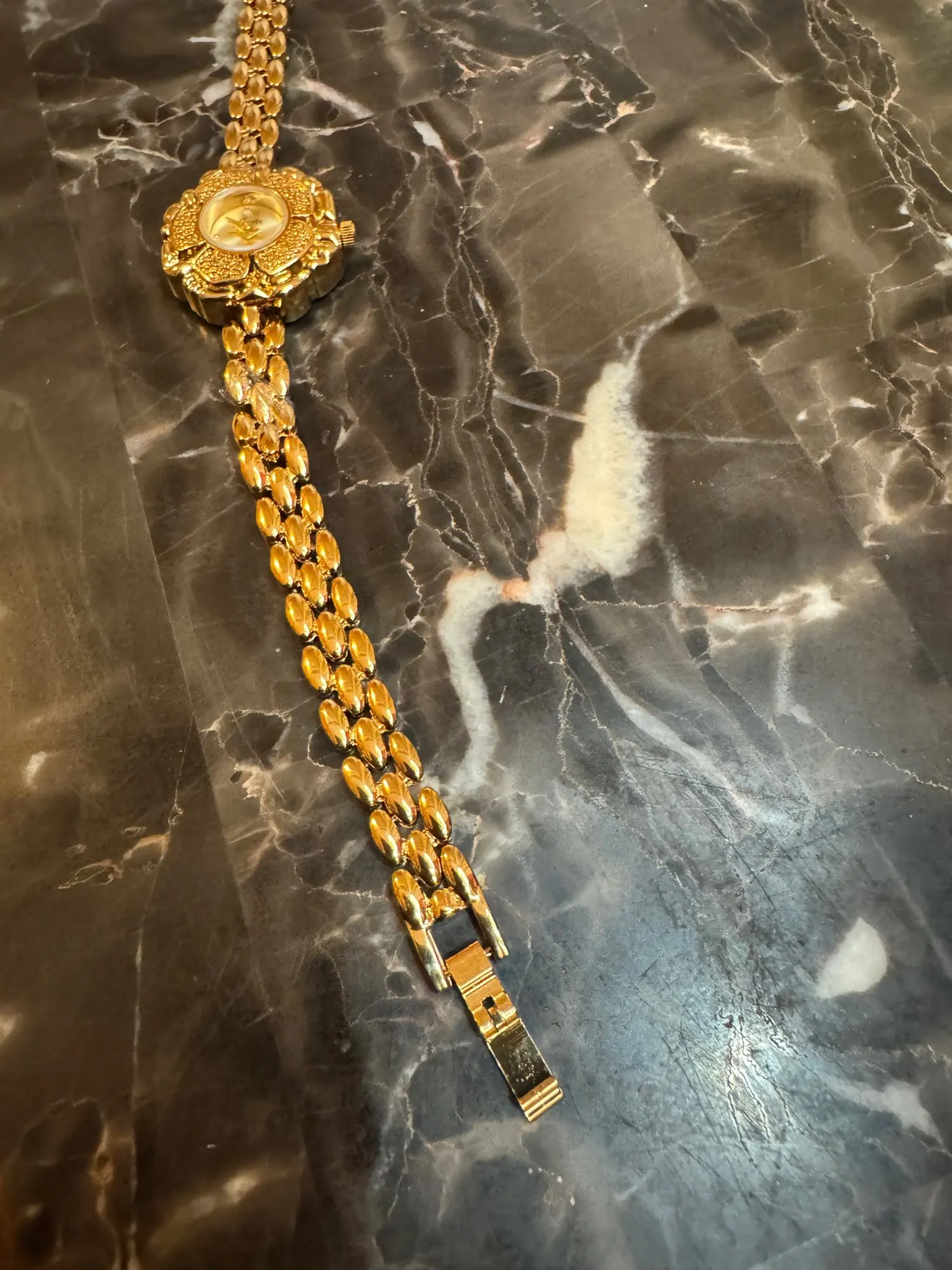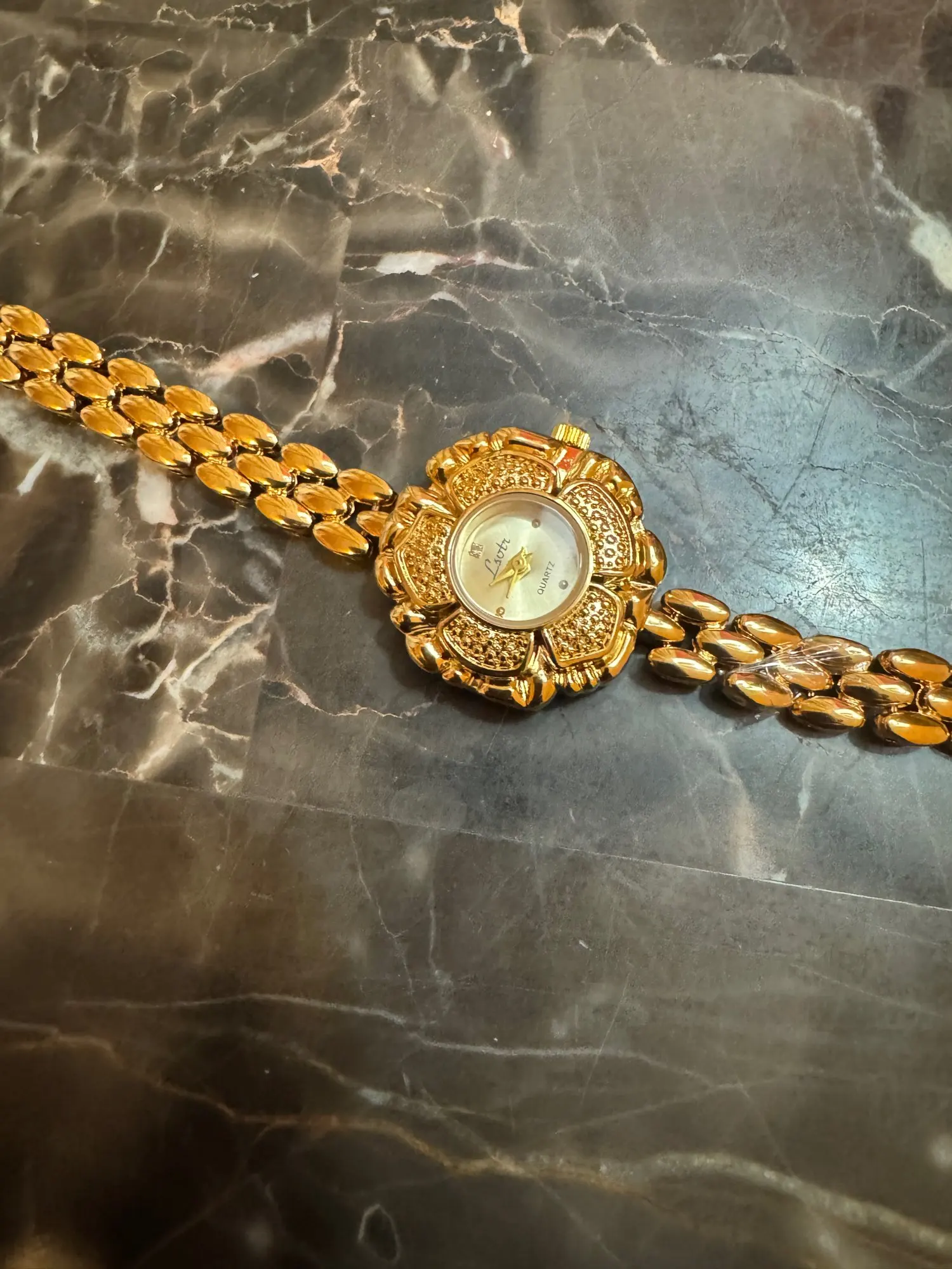 Die Uhr Hannelore vereint zeitlose Eleganz mit kunstvoller Handwerkskunst. Ihr einzigartiges Design in Form einer zarten Blüte verleiht ihr einen unverwechselbaren, femininen Charakter. Das fein strukturierte, goldfarbene Armband mit seinen ovalen Gliedern schmiegt sich angenehm ans Handgelenk und sorgt für höchsten Tragekomfort. Das filigran verzierte Zifferblatt mit dezenten Zeigern und klarer Einteilung macht die Uhr nicht nur zu einem praktischen Zeitmesser, sondern zu einem edlen Schmuckstück, das jedem Outfit eine luxuriöse Note verleiht. Ob zu festlichen Anlässen, eleganten Abendveranstaltungen oder als stilvolles Accessoire im Alltag – Hannelore ist immer ein glänzender Blickfang.